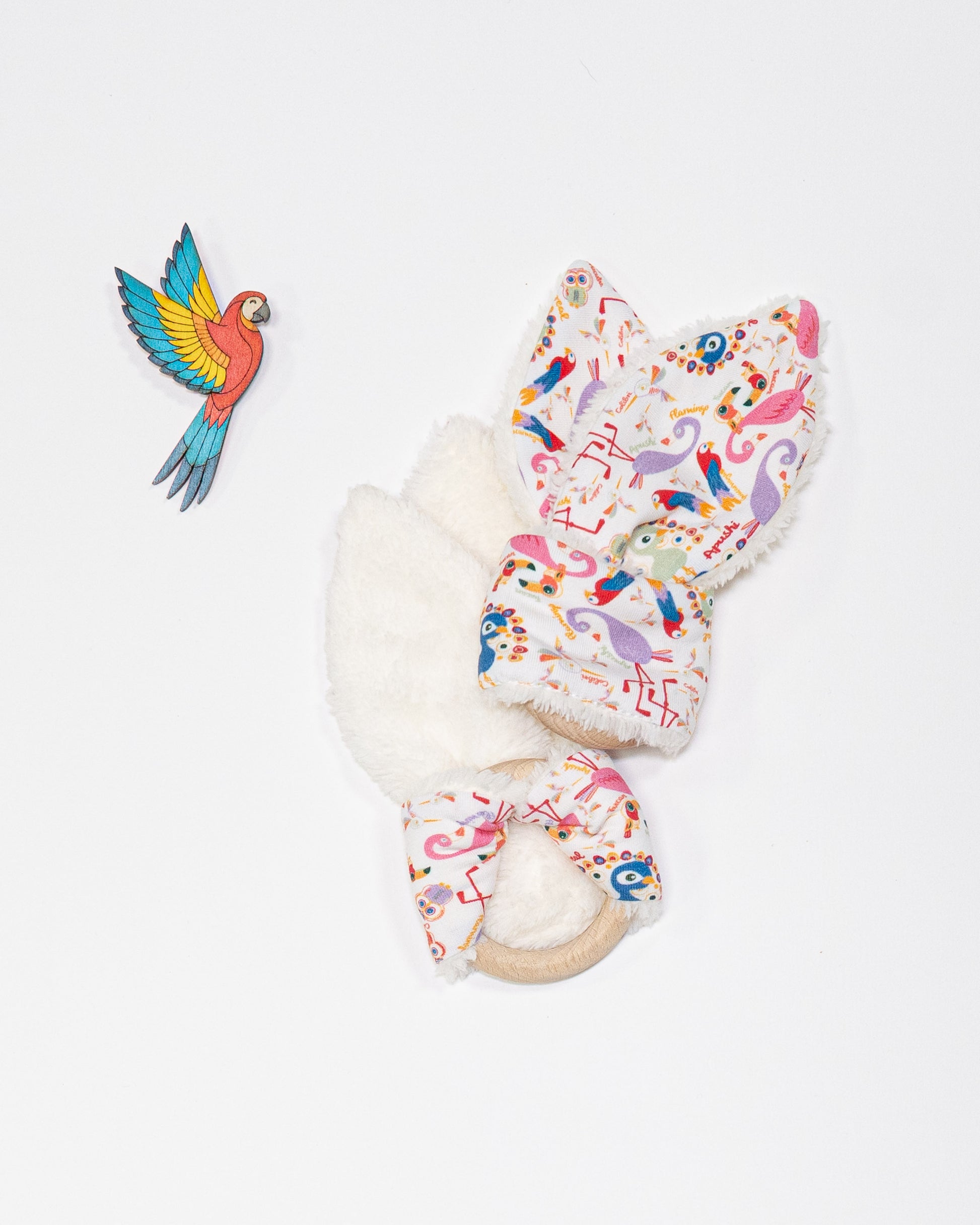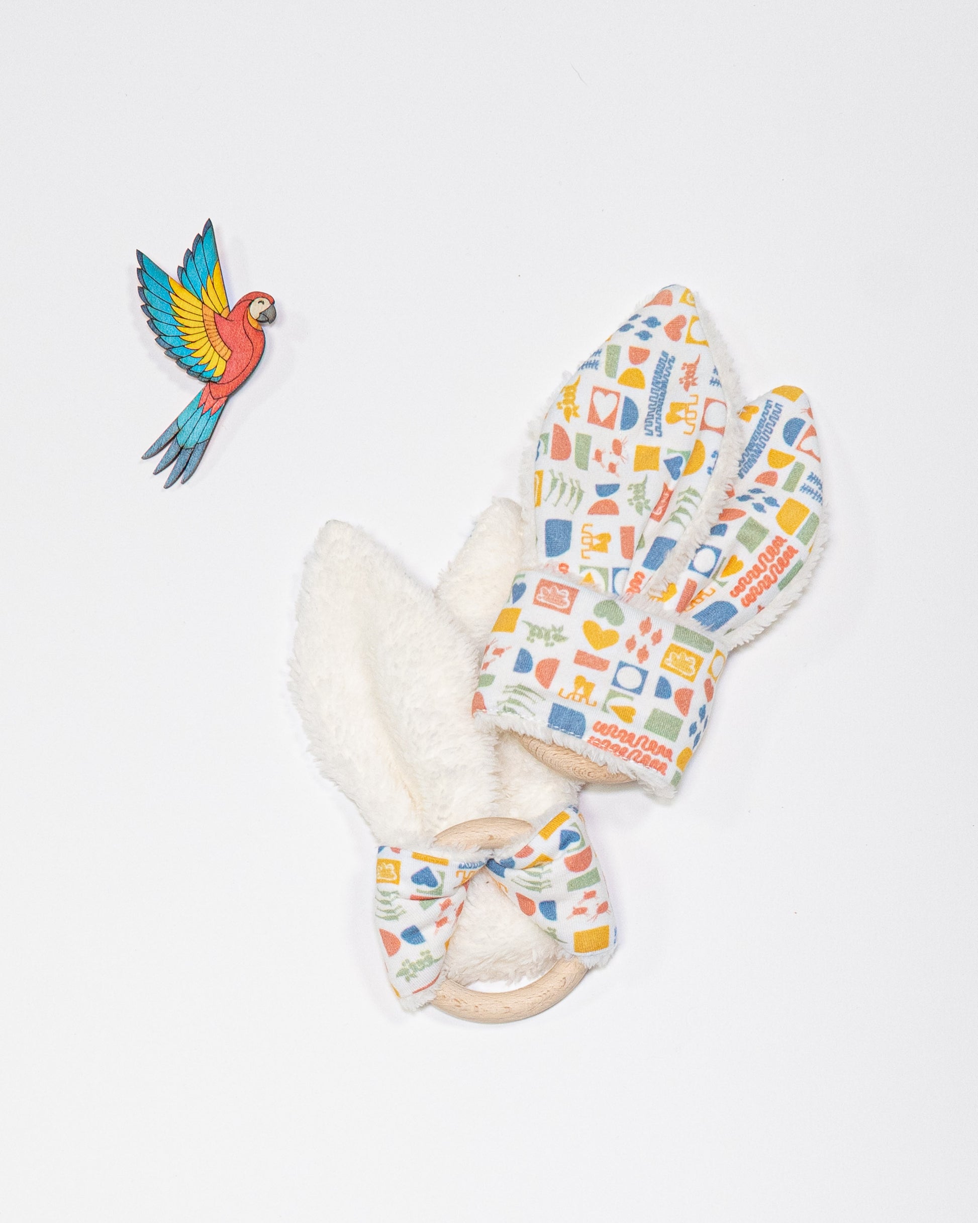 Les oreilles en tissu apportent des textures variées qui stimulent le toucher, encouragent la préhension et apaisent bébé pendant la poussée dentaire. Un petit compagnon idéal pour accompagner ses découvertes sensorielles.