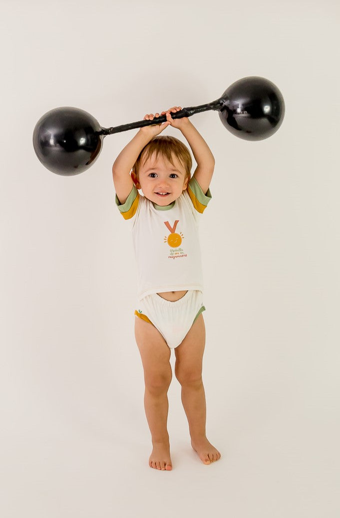 Le body évolutif Medalla (Médaille écrit en espagnol) est notre façon de nous joindre à la célébration des Jeux Olympiques, de nous joindre à la joie d'un événement qui célèbre la multiculturalité, un événement qui célèbre les passions qui nous unissent et la discipline du sport. La phrase "Medalla de oro en mignonnerie" est parfaite pour votre petit cœur, et avec ses manches courtes, le body évolutif est le cadeau parfait pour l'été.